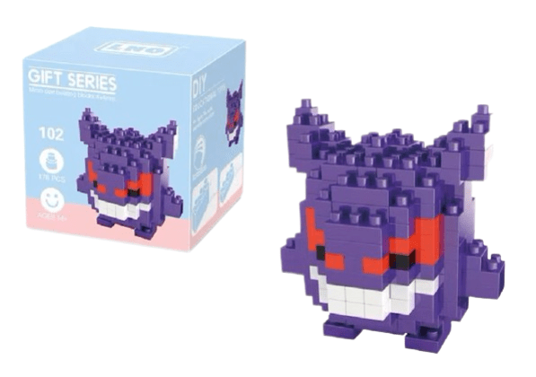 Mikro kocke so tukaj zate, da jih sestaviš. Iz tega kompleta lahko sestaviš obliko svojega najljubšega Pokemona po imenu Gengar. Sodi med kar dva tipa Pokemonov, in sicer med Pokemone duhove in med strupene Pokemone, spoznamo pa ga v prvi generaciji Pokemonov.